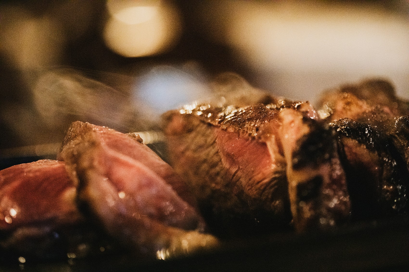 意識が遠のく中『ニクガタベタイ』、心の底、いや頭のてっぺんから爪先まで、もはや細胞レベルで、肉を欲している、身体中からその漲るような熱狂が聞こえたのであった。焼肉では物足りない、すき焼きは卵を割っているゆとりなし。僕が欲しているのは、もっと血の滴るような肉の塊である。その時、ふと閃いた……以前、友人が教えてくれた、我が家の近所にある、塊肉を焼いてくれるステーキ屋さん。