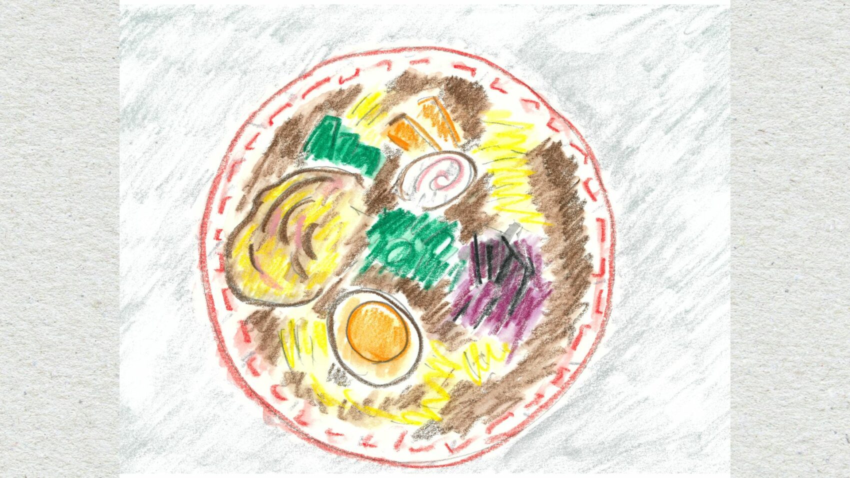 「要一郎さん、今日はありがとう。ラーメン美味しかったよ!またすぐ行きます!!」と、記されていた。銀杏の落ち葉が積もった黄金色の絨毯の上を歩きながら、じんわり暖かい気持ちになって、思わず涙が溢れた。今月の絵は、一緒に作った少し伸びたラーメンです。